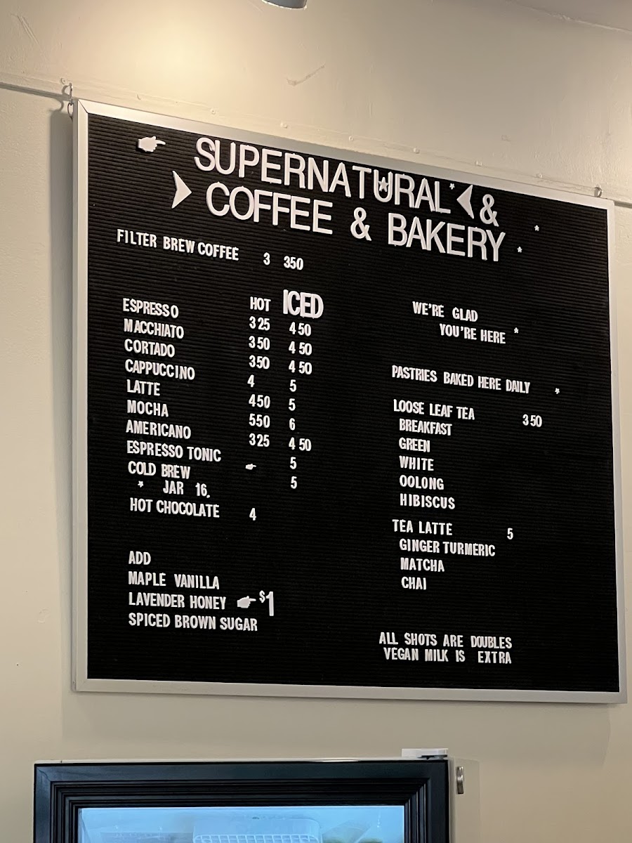 Supernatural Coffee Bakery Menu